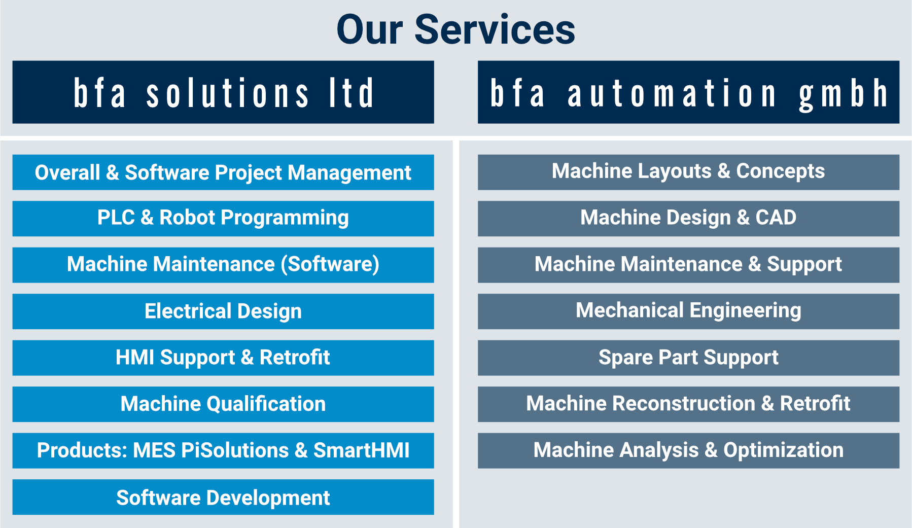 We are pleased to inform you that we are expanding our service portfolio in the field of automation technology with the founding of our subsidiary bfa automation GmbH, based in Ismaning near Munich.